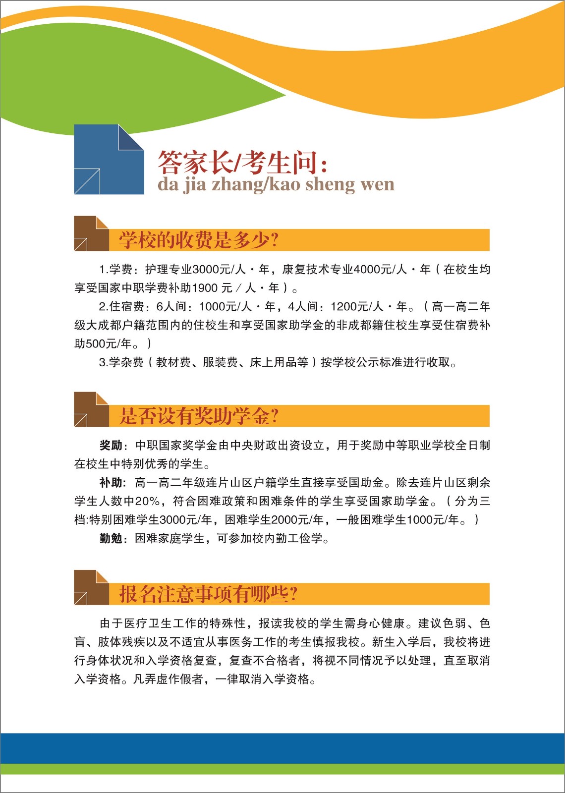 我校具有對口高考醫(yī)藥一類考試的報名資格,可通過單招和對口升學(xué)考試升入普通全日制醫(yī)學(xué)類大專院校學(xué)習(xí),與普通高考升入大學(xué)的學(xué)生享受同等待遇,畢業(yè)由錄取院校頒發(fā)統(tǒng)招大專畢業(yè)證。大專階段可報考護理、藥劑、助產(chǎn)、臨床醫(yī)學(xué)、醫(yī)學(xué)影像、醫(yī)學(xué)檢驗技術(shù)等對口全日制統(tǒng)招大專專業(yè),還可通過四川中醫(yī)藥高等??茖W(xué)校、四川衛(wèi)生康復(fù)職業(yè)學(xué)院、雅安職業(yè)技術(shù)學(xué)院、四川護理職業(yè)學(xué)院、樂山職業(yè)技術(shù)學(xué)院、四川國際標(biāo)榜職業(yè)學(xué)院六所院校的專科專業(yè)報讀成都醫(yī)學(xué)院的本科專業(yè)。
